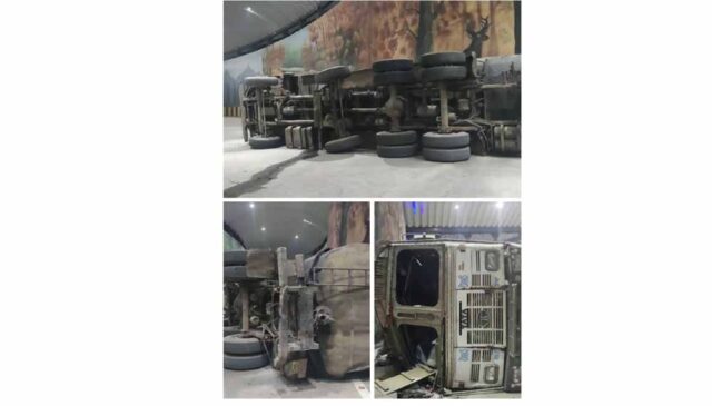 सुपेला के नवनिर्मित रेलवे अंडरब्रिज में 1 अप्रैल की देर रात सुपेला से सेक्टर की ओर जा रहा ट्रक अचानक अंडरब्रिज में जाकर पलटा गया। इस ट्रक में हजारों लीटर ऑयल भरा हुआ था। घटना की सूचना पर पुलिस और दमकल विभाग की टीम मौके पर पहुंची। ऑयल का अंडरब्रिज में फैल चुका था। दमकल कर्मियों ने ट्रक पर फोम का छिड़काव किया गया। जिससे आग लगने से बचाया गया। नहीं तो बड़ा हादसा हो सकता था। इस घटना में ट्रक ड्राइवर को चोट आई है। जिससे अस्पताल ले जाया गया है। मौके पर यातायात पुलिस भी पहुंची और अंडरब्रिज से आवाजाही करने वाले का रूट परिवर्तन किया गया है।
