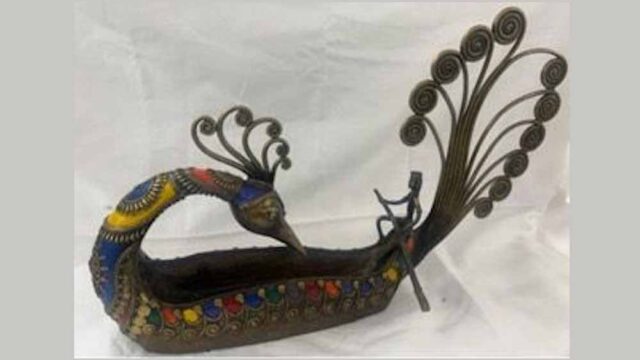 थाई प्रधानमंत्री शिनवात्रा को प्रधानमंत्री मोदी ने डोकरा पीतल की मोर नाव भेंट में दी है. यह छत्तीसगढ़ के जनजातीय कारीगरों द्वारा प्राचीन ‘लॉस्ट-वैक्स’ ढलाई तकनीक से हाथ से बनाई गई कलाकृति है. मोर के आकार की इस नौका पर की गई जटिल नक्काशी और एक शांत आदिवासी नाविक मानव और प्रकृति के बीच सामंजस्य को दर्शाता है, जो डोकरा कला की मूल भावना है.