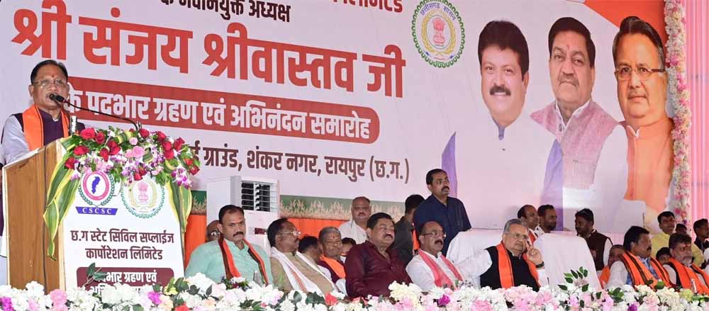 मुख्यमंत्री साय ने अपने संबोधन में कहा कि श्रद्धेय अटल बिहारी बाजपेयी ने छत्तीसगढ़ पृथक राज्य का निर्माण किया। 2003 में जनादेश के बाद डॉ रमन सिंह छत्तीसगढ़ के मुख्यमंत्री बनाए गए जिनके नेतृत्व में प्रदेश का तेजी से विकास हुआ। मुझे गर्व होता है यह बताते हुए कि डॉ सिंह के नेतृत्व में प्रदेश में जो पीडीएस व्यवस्था बनाई गई। वह आज पूरे देश में सर्वश्रेष्ठ पीडीएस व्यवस्था है। उन्होंने नवनियुक्त अध्यक्ष श्री संजय श्रीवास्तव की प्रशंसा करते हुए कहा कि बेहद अनुभवी हैं रायपुर नगर निगम में सभापति और रायपुर विकास निगम के अध्यक्ष का दायित्व भी उन्होंने निभाया है। विधानसभा अध्यक्ष डॉ रमन सिंह ने कहा कि यह कॉर्पाेरेशन सिर्फ एक संस्था नहीं है, बल्कि सरकार और जनता के बीच विश्वास का सेतु है। यह एकमात्र निगम है जो प्रदेश की 75 प्रतिशत जनता से जुड़ा हुआ है। राशन की एक-एक दुकान की मॉनिटरिंग, वेयर हाउस की निगरानी, समय पर जन-जन तक खाद्यान्न सप्लाई सुनिश्चित करने तक की महत्वपूर्ण जिम्मेदारी है।