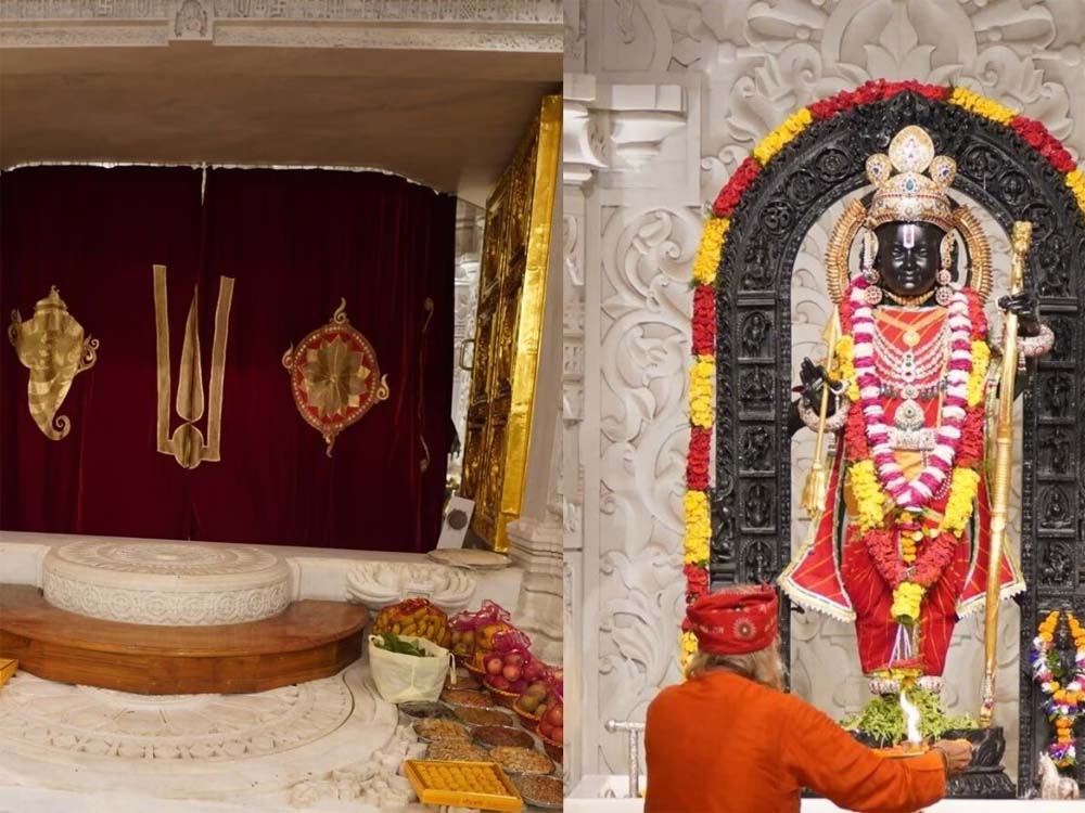 राम मंदिर में विराजमान रामलला के गर्भगृह के सामने लगा पर्दा बदल दिया गया है। अब मैरून रंग की जगह बादामी रंग का कढ़ाईदार पर्दा लगाया गया है। पूरे दिन समय समय पर भोग के समय रामभक्तों को दिखाई देगा। इसके पहले तक मैरून रंग के मखमली पर्दे पर रामानुजीय उपासना परम्परा के प्रमुख चिह्न शंख व चक्र को सुनहरे तारों से अंकित किया गया था। नए पर्दे पर अब कोई चिह्न नहीं है।
