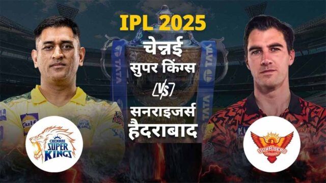 चेन्नई सुपर किंग्स और सनराइजर्स हैदराबाद के बीच आईपीएल 2025 का 43वां मुकाबला शुक्रवार को एम चिदंबरम स्टेडियम में खेला जा रहा है। सनराइजर्स हैदराबाद के कप्तान पैट कमिंस ने टॉस जीतकर पहले गेंदबाजी का फैसला किया है।चेन्नई ने दो बदलाव किए हैं। रचिन और शंकर को बाहर का रास्ता दिखाया गया है, जबकि ब्रेविस और हुड्डा को प्लेइंग इलेवन में जगह मिली है।