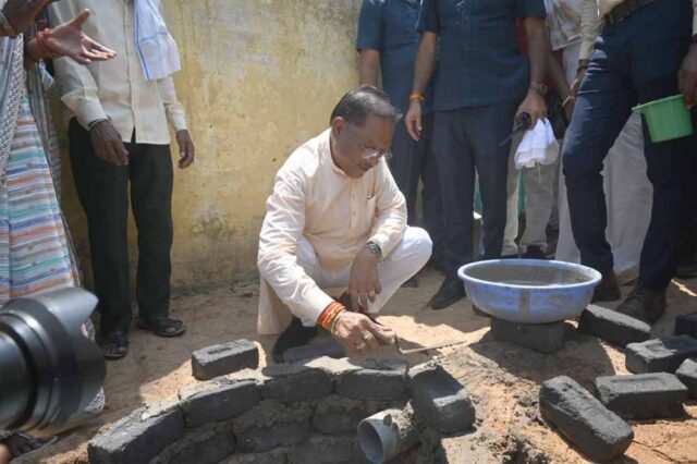 मुख्यमंत्री विष्णु देव साय प्रदेश व्यापी सुशासन तिहार अंतर्गत आज विकासखंड कसडोल के विशेष पिछडी जनजाति कमार बाहुल्य गांव बल्दाकछार पहुंचे। उन्होंने मोर गांव, मोर पानी महाभियान अंतर्गत जल संचयन के लिए जल संचयन वाहिनी द्वारा निर्माण किये जा रहे सोखता गड्ढे का अवलोकन किया। उन्होंने  स्वयं कैचा लेकर निर्माणाधीन सोखता गड्ढा में ईंट जोड़ाई किया। पानी बचाने के लिए जल संचयन वाहिनी के कार्यों की सराहना करते हुए मुख्यमंत्री ने कहा कि जल संकट से बचने इस तरह के प्रयास जरुरी है।