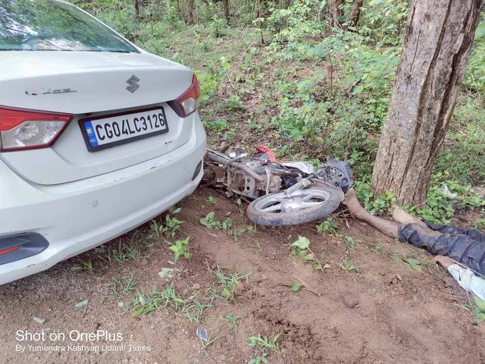 Home छत्तीसगढ़ तेज रफ्तार कार ने बाइक सवार पति-पत्नी को मारी ठोकर, चालक...
