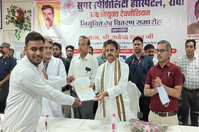 उप मुख्यमंत्री श्री राजेन्द्र शुक्ल ने सुपर स्पेशलिटी चिकित्सालय रीवा में नव नियुक्त पैरा-मेडिकल स्टाफ को नियुक्ति पत्र सौंपे। उप मुख्यमंत्री श्री शुक्ल ने कहा कि पैरा मेडिकल स्टाफ का योगदान स्वास्थ्य सेवा के क्षेत्र में अत्यंत महत्वपूर्ण है। राज्य सरकार बेहतर कार्यस्थल परिस्थितियों के लिए प्रतिबद्ध है। उन्होंने कहा कि इस समारोह में हम उन योद्धाओं को सम्मानित कर रहे हैं, जो स्वास्थ्य सेवाओं में अह्म भूमिका निभाते हैं। नियुक्ति पत्र सिर्फ एक दस्तावेज नहीं, बल्कि आपके जीवन में एक नई जिम्मेदारी का प्रतीक है। पैरा मेडिकल स्टाफ कर्तव्यों का पालन करते हुए मरीजों की देखभाल में महत्वपूर्ण भूमिका निभाते है, जिससे पूरे समाज को लाभ होता है।