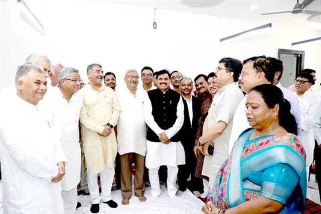 मुख्यमंत्री डॉ. मोहन यादव 74 बंगले स्थित स्वदेश समाचार पत्र कार्यालय के नवनिर्मित विंग की गृह प्रवेश पूजा में सम्मिलित हुए और समाचार पत्र समूह के संपादक मंडल, पत्रकारगण और कर्मचारियों को बधाई और शुभकामनाएं दी। पूजन में ऊर्जा मंत्री प्रद्युमन सिंह, उच्च शिक्षा मंत्री इंदर सिंह परमार, अल्पसंख्यक कल्याण राज्य मंत्री श्रीमती कृष्णा गौर, सांसद वी.डी. शर्मा, भोपाल महापौर श्रीमती मालती राय भी सम्मिलित हुईं। इस अवसर पर विधायक रामेश्वर शर्मा, भगवान दास सबनानी, समूह संपादक अतुल तारे, प्रबंध संपादक सौमित्र जोशी, सलाहकार संपादक गिरीश उपाध्याय, स्थानीय संपादक चंद्रवेश पांडे, सहित जनप्रतिनिधि और पत्रकार गण उपस्थित थे।