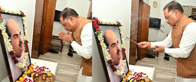 मुख्यमंत्री विष्णु देव साय ने आज अपने निवास कार्यालय में भारत के प्रथम उद्योग मंत्री, महान शिक्षाविद्, और भारतीय जनसंघ के संस्थापक डॉ. श्यामा प्रसाद मुखर्जी की पुण्यतिथि पर उनके चित्र पर पुष्प अर्पित कर श्रद्धांजलि दी। मुख्यमंत्री ने राष्ट्र निर्माण में डॉ. मुखर्जी के अतुलनीय योगदान को स्मरण करते हुए उन्हें नमन किया।