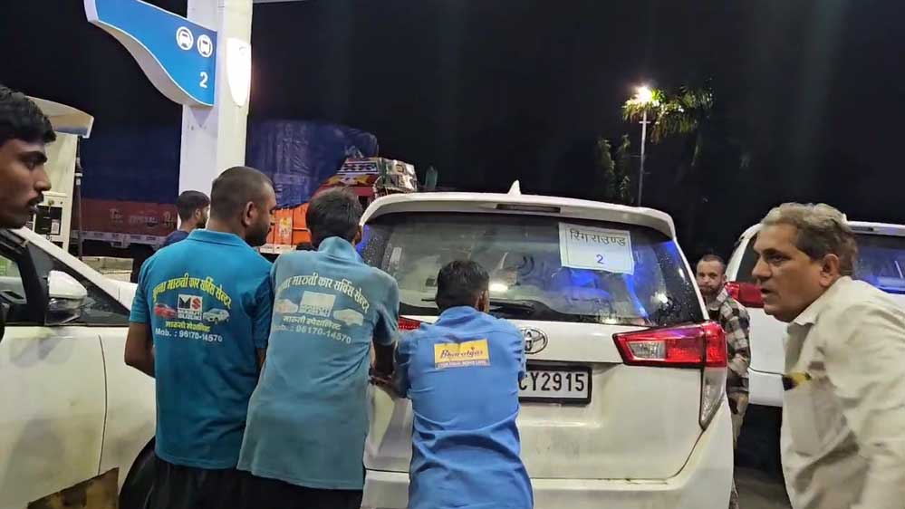 पेट्रोल पंप पर ही बंद हो गए वाहन, धक्के लगाए