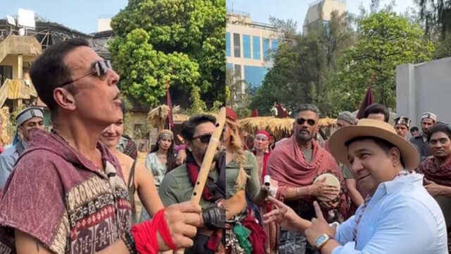 वायरल वीडियो में कोरियोग्राफर से डायरेक्टर बने अहमद खान अक्षय कुमार को एक डांस सीन की रिहर्सल करा रहे हैं। इस मौके पर अक्षय कुमार काफी मस्ती के मूड में दिखे। वह बांसुरी हाथ में लिए नजर आए। बांसुरी बजाने की रिहर्सल भी करते दिखे। अक्षय के अलावा वीडियो में परेश रावल, सुनील शेट्टी, जॉनी लीवर, तुषार कपूर और दिशा पाटनी जैसे सेलेब्स नजर आ रहे हैं। सभी मस्ती भरे अंदाज में डांस की प्रैक्टिस करते दिख रहे हैं।