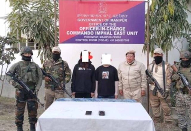 मणिपुर पुलिस ने इंफाल पूर्व जिले के पोरोमपत पंगल लेइराक इलाके से एक ड्रग डीलर बेसैमायुम याइबी (47) को गिरफ्तार किया। उसके पास से सात साबुन के डिब्बों में छिपाई गई हेरोइन जब्त की गई। ड्रग्स की अनुमानित कीमत 16 लाख रुपए थी। सुरक्षा बलों ने काकचिंग जिले से कुछ हथियार और गोला-बारूद भी बरामद किए। बरामद हथियारों और गोला-बारूद में एक एसएलआर, स्थानीय रूप से बनी बोल्ट एक्शन स्नाइपर राइफल, एक डबल-बैरल बोल्ट राइफल, एक सिंगल-बैरल बोल्ट राइफल, एक स्थानीय रूप से बनी पिस्तौल और एक 36 एचई हैंड ग्रेनेड शामिल हैं।