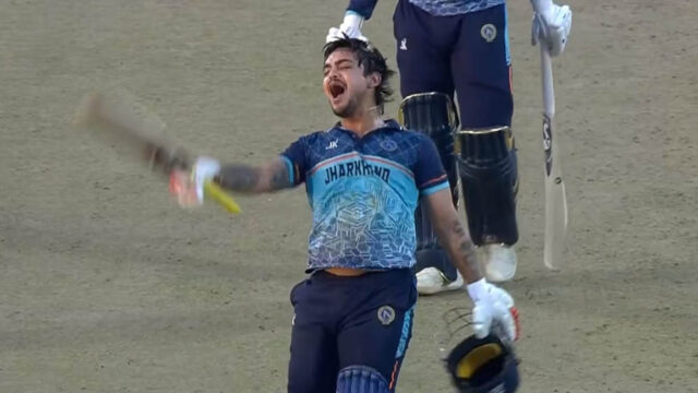 झारखंड की पारी 50 ओवरों में 412 रन तक कैसे पहुंची, इसका जवाब सिर्फ आंकड़ों में नहीं, ईशान किशन की 39 गेंदों में 125 रनों की तूफानी पारी में छुपा है. कप्तान और विकेटकीपर के रूप में नंबर-6 पर उतरकर ईशान ने जो किया, वह लिस्ट-ए क्रिकेट की परिभाषा ही बदल देता है. महज 33 गेंदों में शतक, 7 चौके, 14 छक्के और 320 से ऊपर का स्ट्राइक रेट…  यह भारत की दूसरी सबसे तेज लिस्ट-ए सेंचुरी है. उनसे तेज सिर्फ बिहार के सकिबुल गनी रहे, जिन्होंने उनकी पारी से कुछ ही मिनट पहले 32 गेंदों में शतक ठोक दिया था.