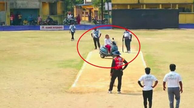 इसलिए स्कूटी लेकर पिच पर पहुंची महिला