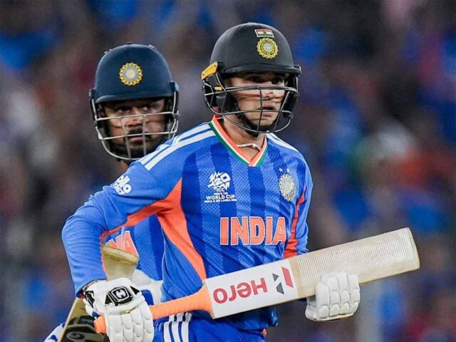 अभिषेक शर्मा ने 18 गेंदों में अर्धशतक पूरा किया, लेकिन 21 गेंदों में 52 रन बनाकर वे आउट हो गए। हालांकि, भारत को तब तक दमदार शुरुआत मिल चुकी थी। संजू सैमसन ने 33 गेंदों में अपना अर्धशतक पूरा किया, जो इस टी20 विश्व कप में उनका लगातार तीसरा अर्धशतक है। संजू फिर से 89 रनों की पारी खेलकर आउट हुए। ईशान किशन ने 23 गेंदों में अर्धशतक पूरा किया, लेकिन वे 54 रन की पारी खेलकर आउट हो गए। सूर्या का खाता नहीं खुला और हार्दिक ने सिर्फ 18 रन बनाए। शिवम दुबे ने 8 गेंदों में 26 रन बनाए।