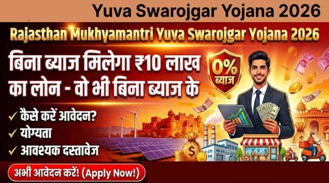 केंद्र सरकार और राज्य सरकारों की तरफ से युवाओं को आगे बढ़ाने के लिए कई सरकारी योजनाएं चलाई जाती हैं. इसी में से एक राज्य सरकार की ओर से भी एक योजना चलाई जा रही है, जिसका नाम मुख्यमंत्री युवा स्वरोजगार योजना 2026 है. इस योजना को राजस्थान सरकार की ओर से शुरू किया गया है।