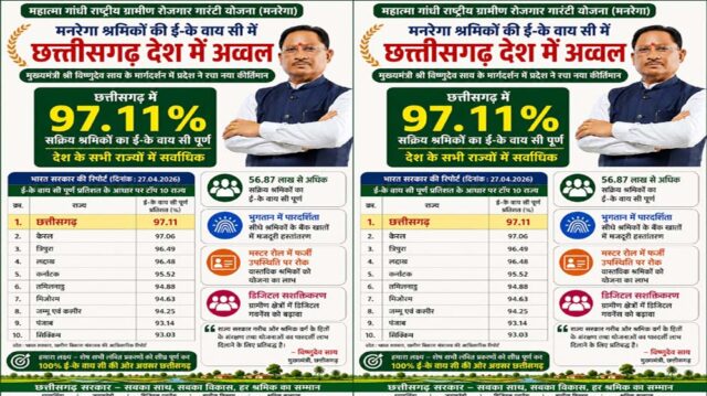 छत्तीसगढ़ ने मनरेगा श्रमिकों की ई-केवाईसी में किया नया कीर्तिमान, देश में अव्वल