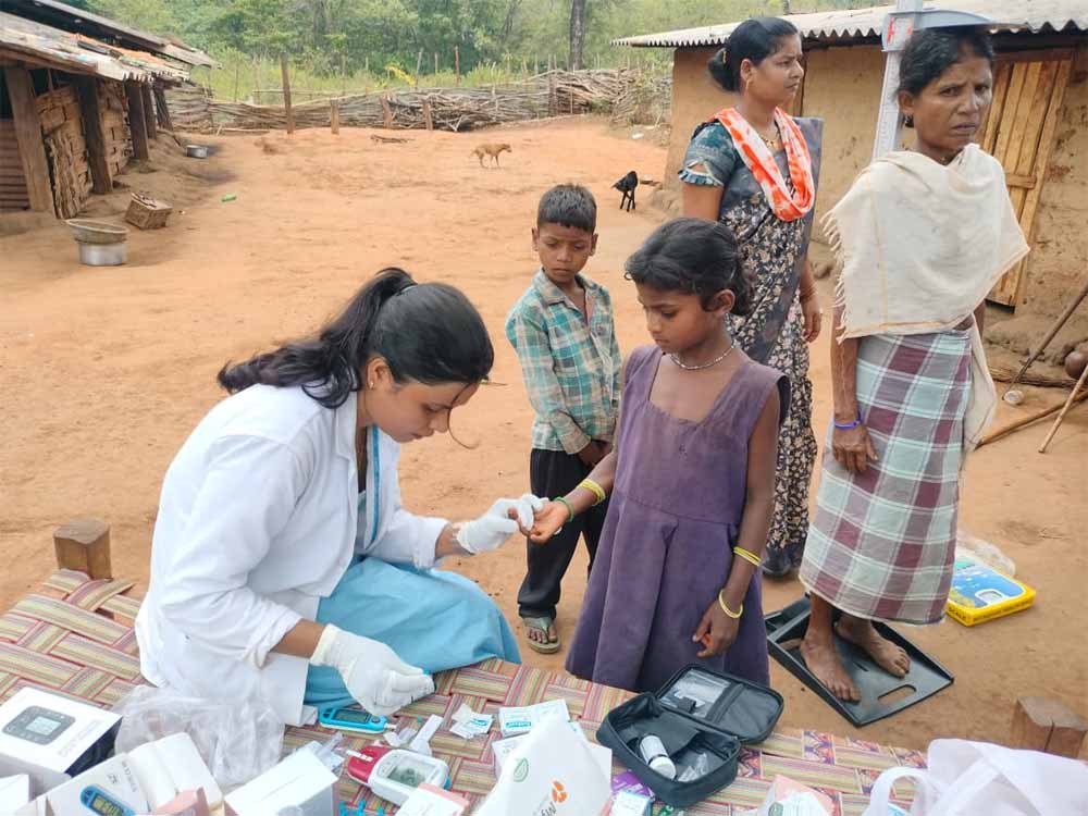 गांव पहुंचने के बाद टीम ने 62 ग्रामीणों की विस्तृत स्वास्थ्य जांच की। इनमें बुजुर्ग, महिलाएं और बच्चे शामिल रहे, जिनमें कई ऐसे लोग भी थे, जिन्होंने पहली बार इस तरह की समग्र जांच कराई। मलेरिया और सिकल सेल (हीमोग्लोबिन) की जांच के साथ-साथ मोतियाबिंद और कुष्ठ रोग के संभावित मरीजों की पहचान की गई। गर्भवती महिलाओं की विशेष जांच की गई, वहीं बच्चों का टीकाकरण भी सुनिश्चित किया गया।
